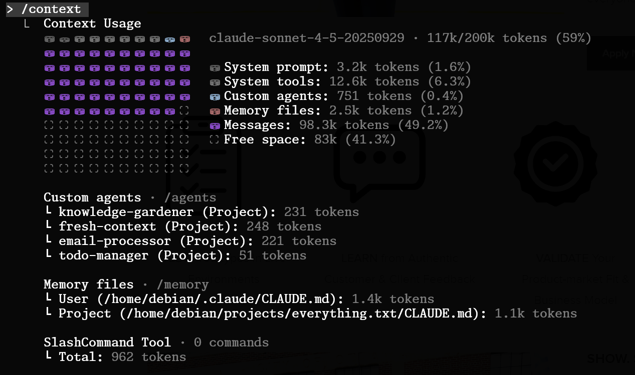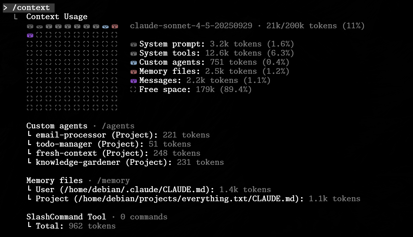 You can see that the system prompt and tools take up a pretty large chunk of context right off the bat. Meanwhile, custom sub-agents and personal memory files can take up much less space, giving developers a lot for a little.