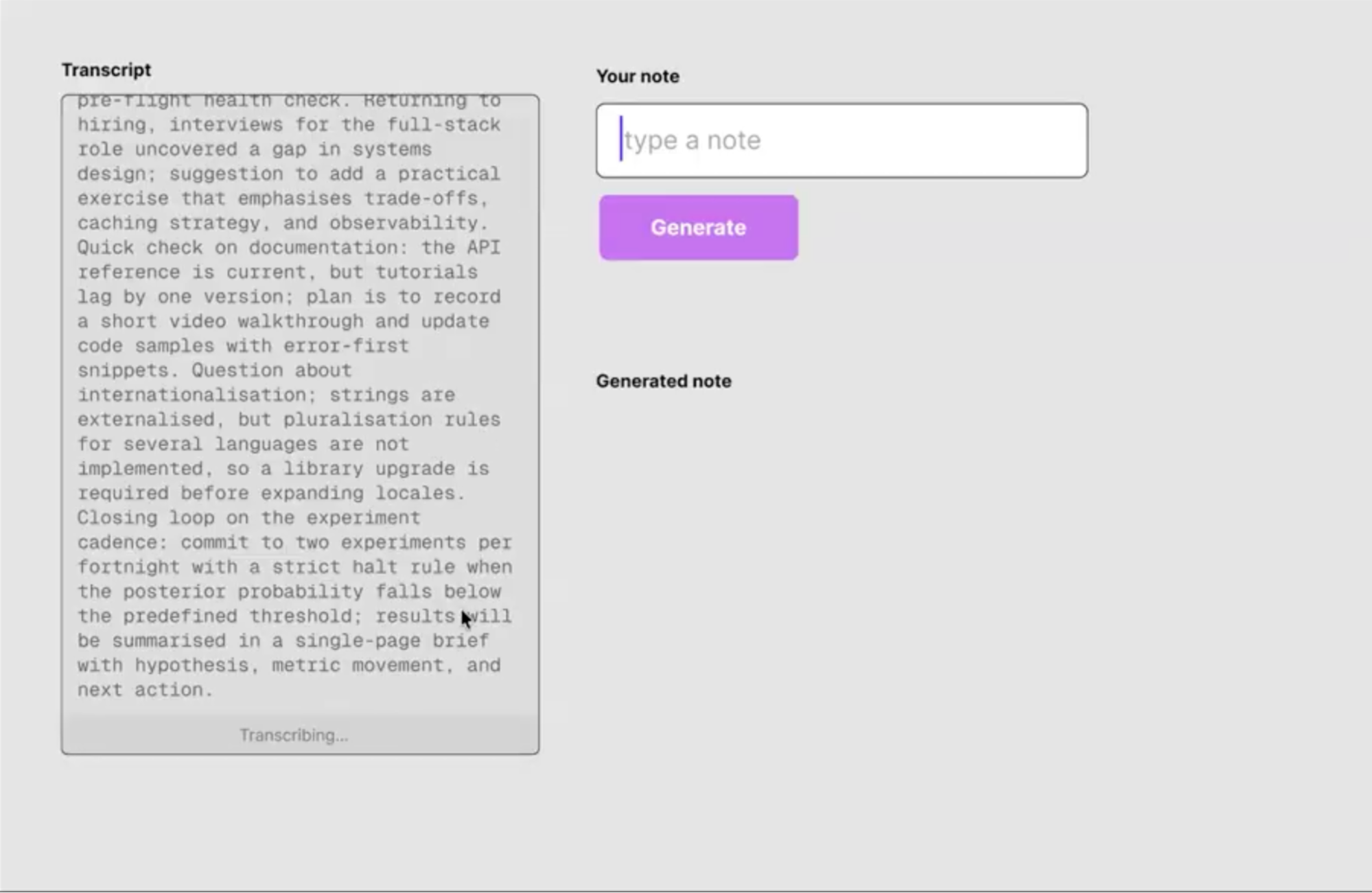 Much of the obsession for the Granola team, back then, was how to interact with meeting notes in real-time. In fact, the core feature that was pitched to us (and that I fell in love with and that I have pledged I would pay for should it be resurrected) was a tab button that would expand some trigger word into the complete transcript around that word.